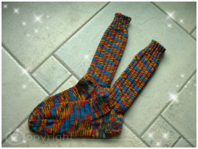 Gestrickte Socken aus Rellana-Wolle